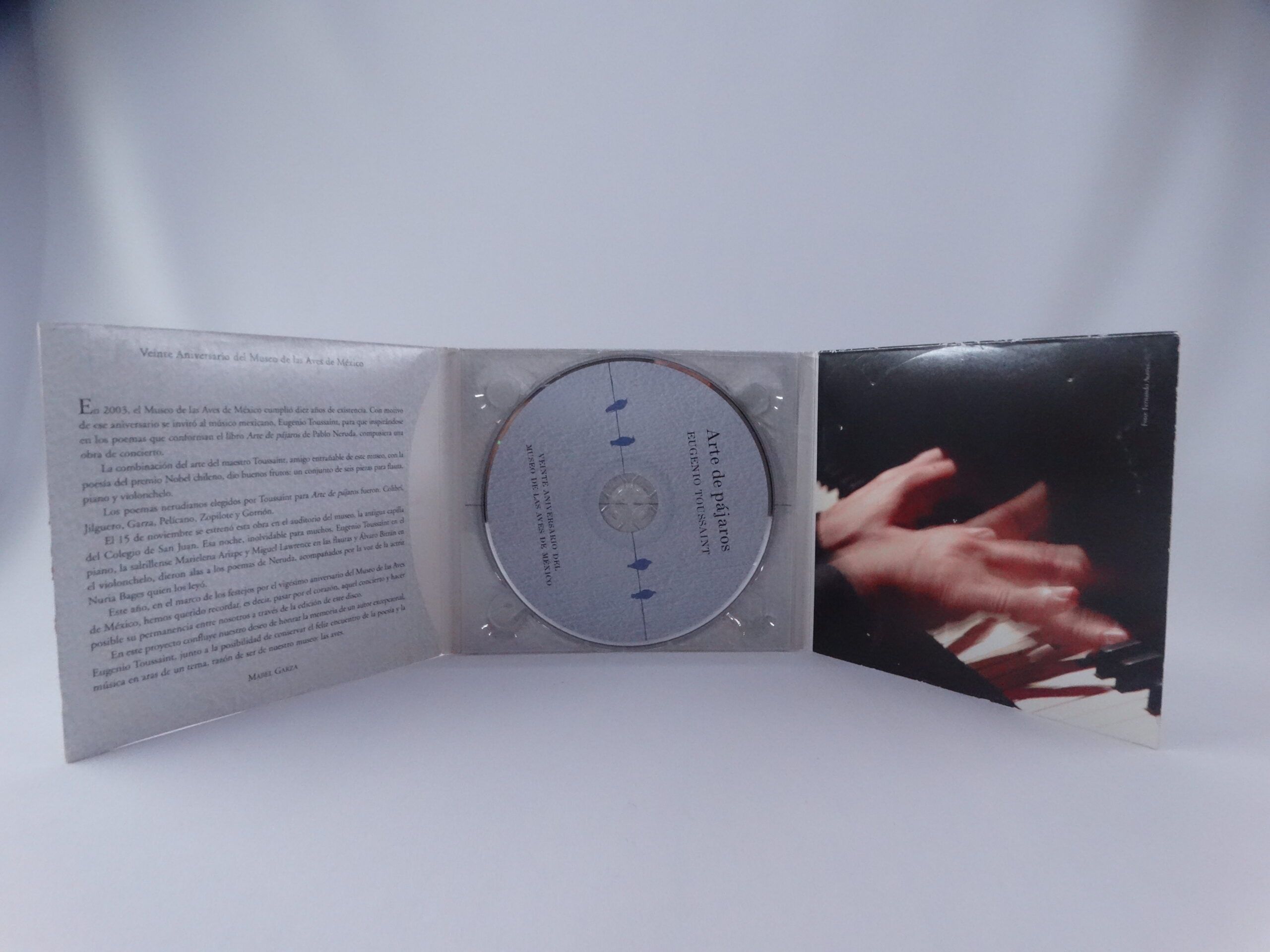 Descripción: Disco conmemorativo del XX aniversario del Museo de las Aves de México en donde se combinan de una manera hermosa la lectura de poemas de Pablo Neruda y la música de Eugenio Toussaint, un disco de colección.